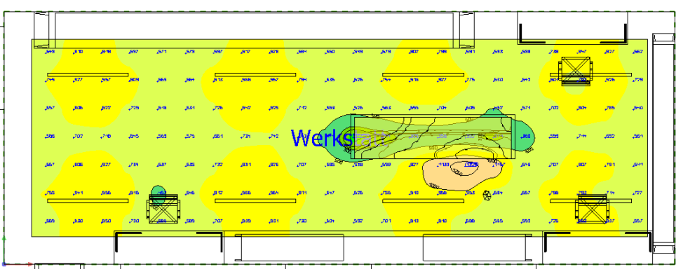 Visualisierung und Berechnung für einen Beleuchtungstausch einer Werkstatt für Schaltschrankbau.