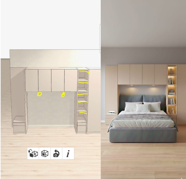 Erstellung einer KI-Simulation der Beleuchtung für maßgeschreinerte Möbel in einer Eigentumswohnung.