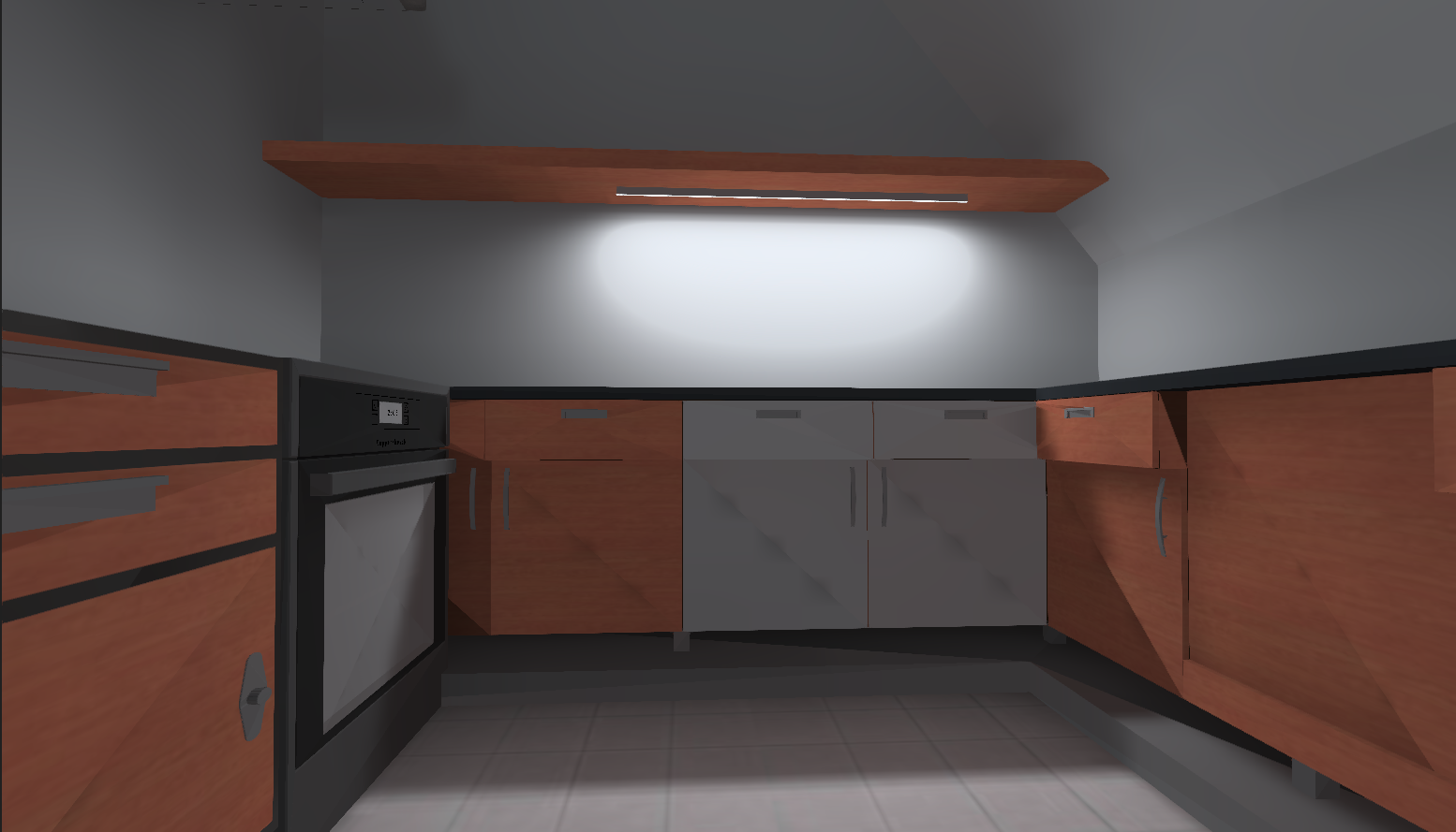 Erstellung einer KI-Simulation der Beleuchtung für maßgeschreinerte Möbel in einer Eigentumswohnung.