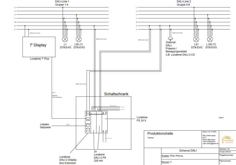 Erstellung eines DALI-Schemas für eine Produktionshalle für eine Elektroinstallationsfirma.